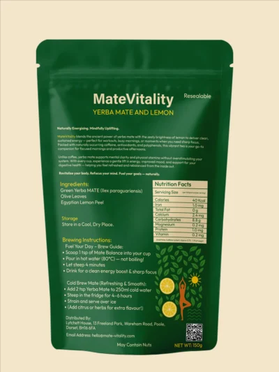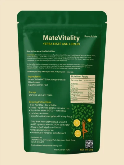 Made with pure yerba mate leaves and lemon, free from artificial flavors or preservatives just nature’s energy in your cup.